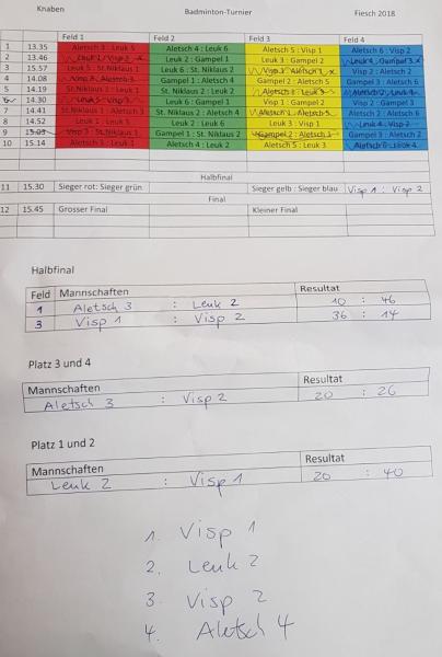 Resultate Badmintonturnier 24. Januar 2018 in Fiesch
